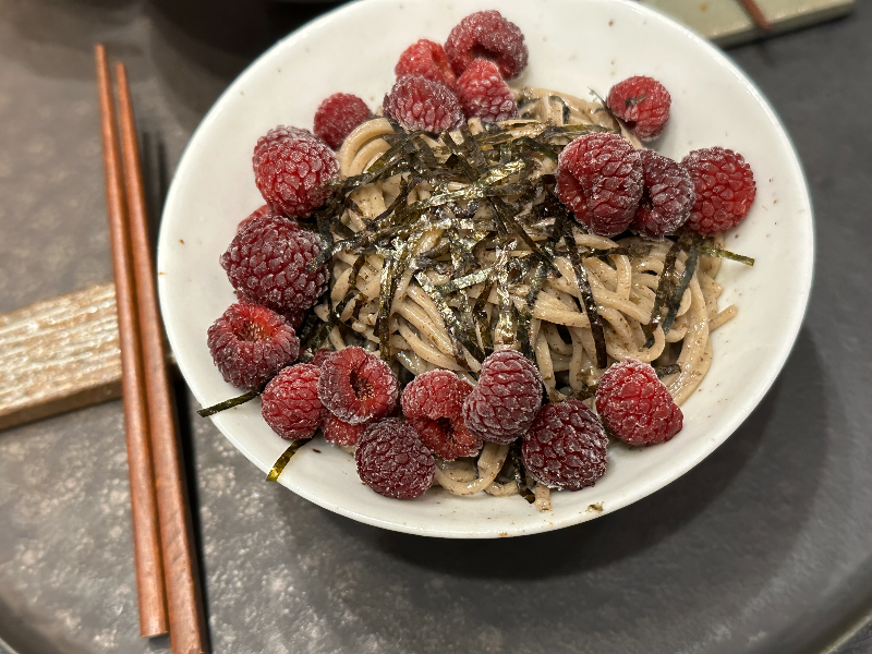 그리고 드디어 먹어 본 대망의 산딸기 국수!!