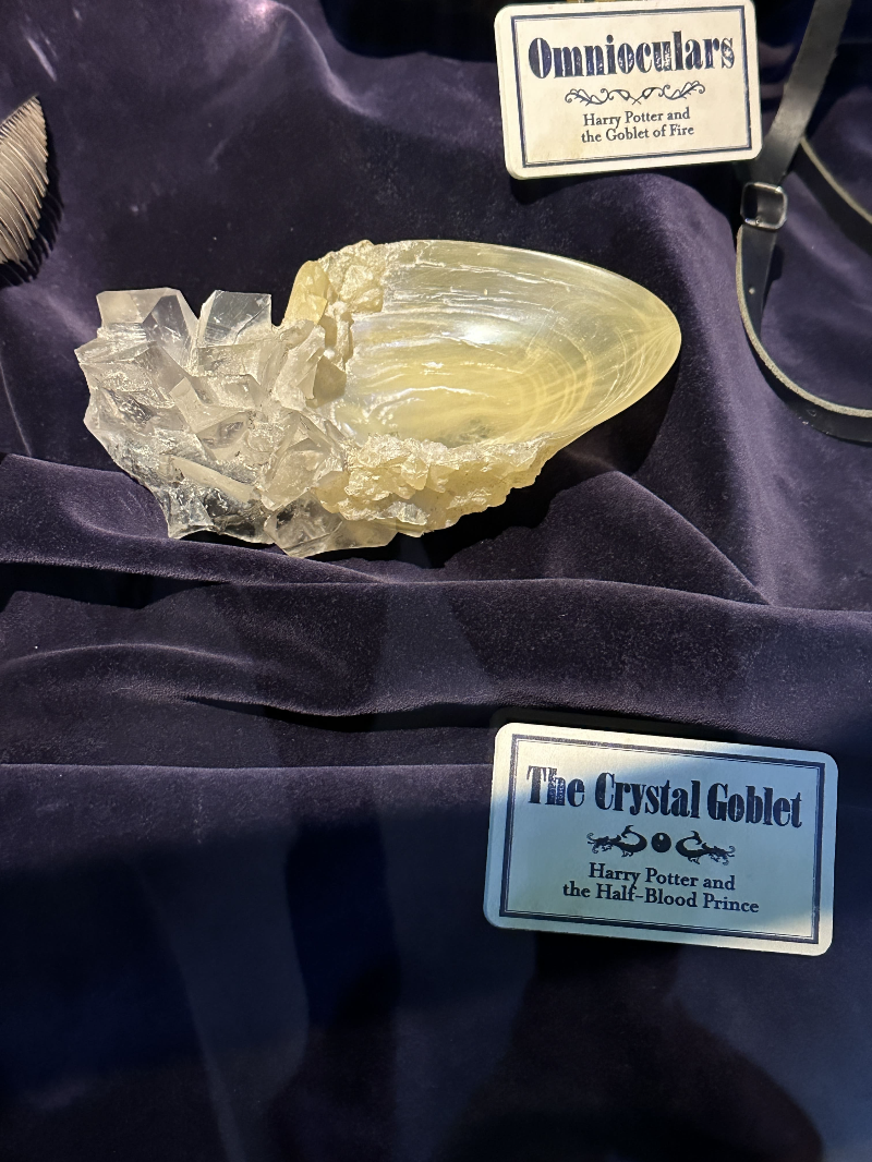 특히 트리위저드컵과 크리스털 고블렛은 정말 고퀄이었어요. 저 크리스털 고블렛은 해리와 덤블도어가 죽음의 성물들을 없애는 과정에서 사용되었던 (해리가 막 억지로 덤블도어에게 물 퍼다 먹였던..) 그 컵입니다. 혼혈왕자 편에서 실제 쓰였던 것이라고 아래 라벨에 쓰여있네요!