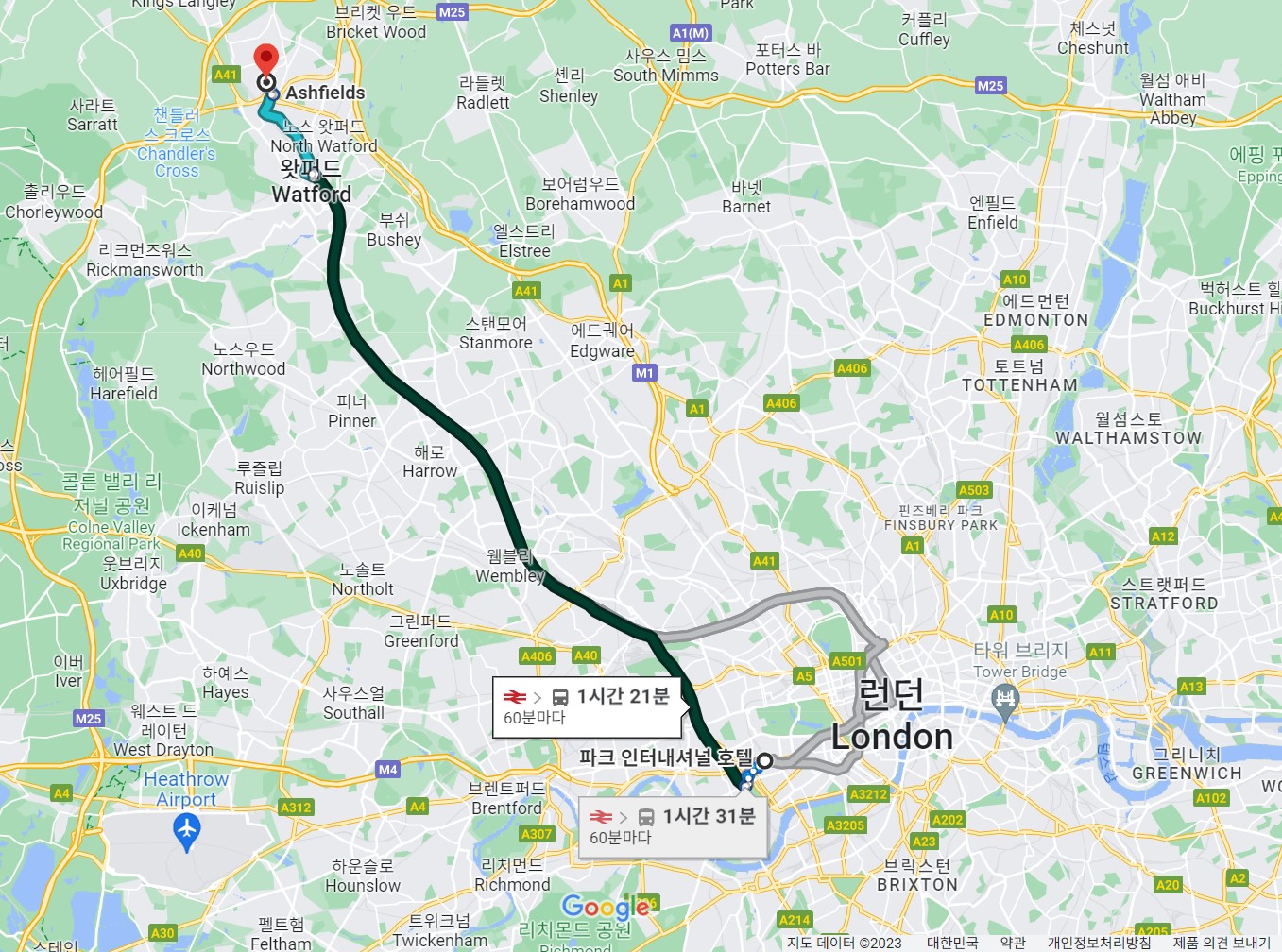- 내가 있는 위치에서 → 🚉Watford 역(지하철 말고 기차)으로 이동