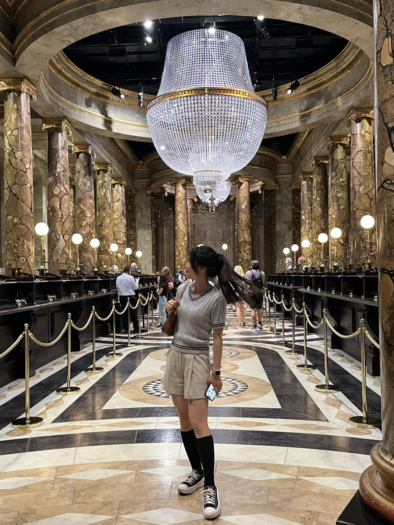 야외에서 다시 실내 세트장으로 들어오면, 그린고트 은행과 호그와트 성을 볼 수가 있어요. 실제 영화 속에 등장했던 그린고트 은행에는 엄청 커다란 샹들리에가 있어서 사진이 예쁘게 잘 나오더라고요. 나중에 영화에서는 샹들리에가 부서지는 걸로 나왔던 것 같은데 다시 만들어서 달았나 봅니다ㅎㅎ 고블린들은 마네킹인 거 알고 있는데도 엄청 리얼해서 가까이에서 보면 좀 징그러워요;;