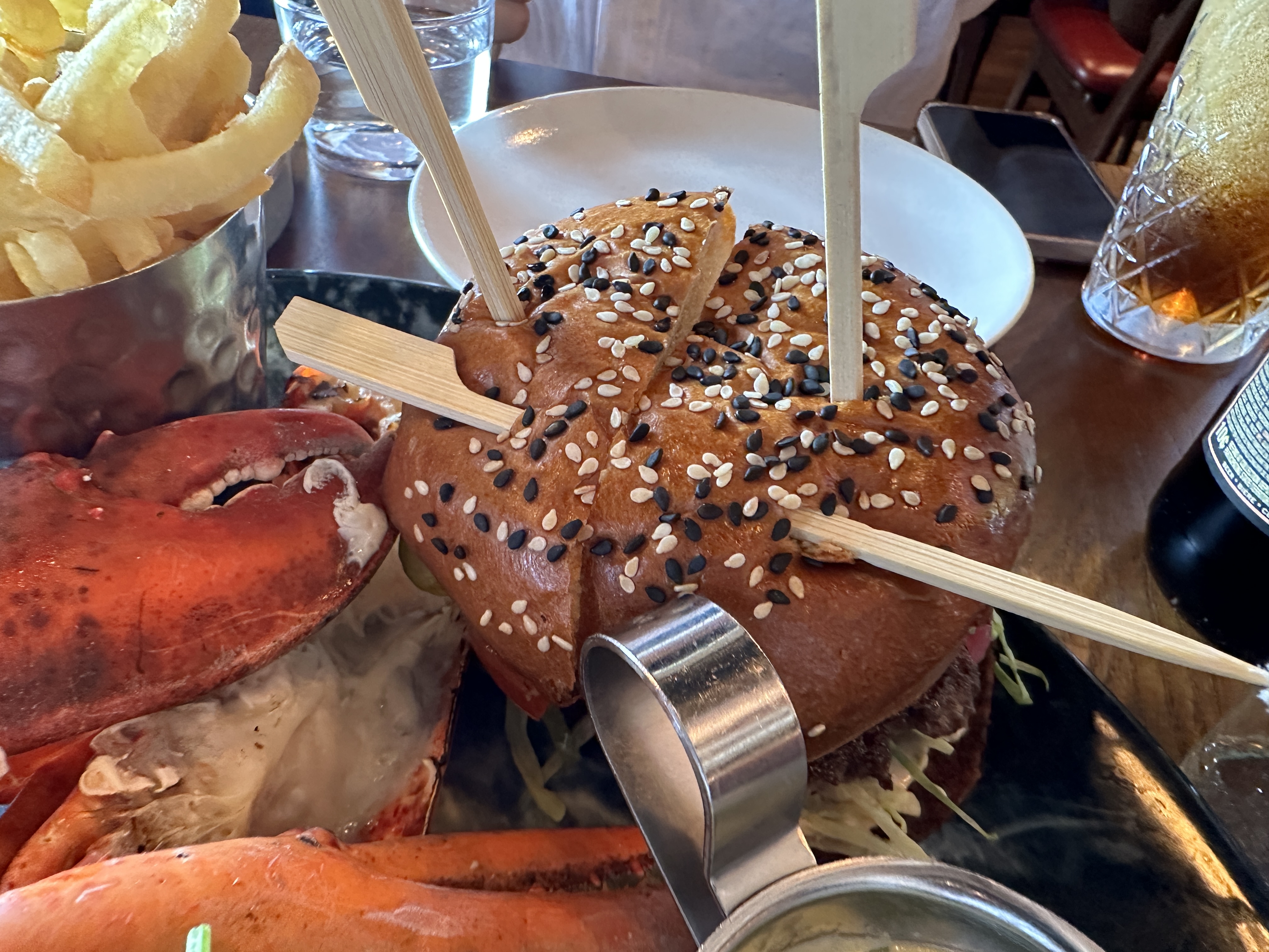메인은 버거와 랍스터고, 랍스터 사이즈는 half 또는 whole 중 선택할 수 있어요.