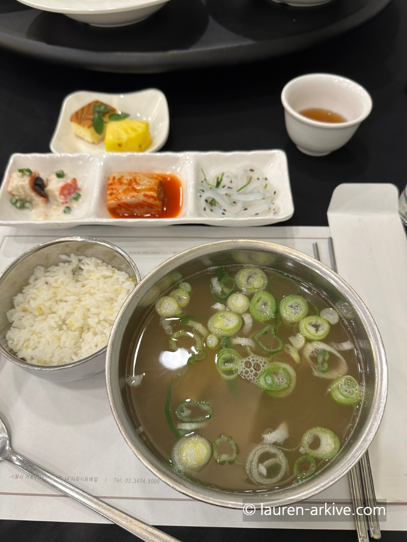 무엇보다 뷔페식이 아니라 한식 한상차림으로 나오는데요. 이 더화이트베일홀의 가장 큰 장점이 바로 이 부분입니다. 뷔페는 자리 맡기도 힘들고 여러 번 왔다 갔다 해야 해서 밥 먹기 불편하기 마련인데요. 원형 식탁에 각자 원하는 만큼 덜어먹을 수 있도록 음식이 미리 다 세팅되어 있고요. 또 갈비탕 맛집입니다 요기가ㅎㅎ 제 지인들도 밥 너무 맛있게 잘 먹고 갔다고 해줬어요! 저도 식 끝나고 갈비탕 한 그릇 먹었는데 따끈따끈하고 든든하니~ 아주 맛있더라구요.