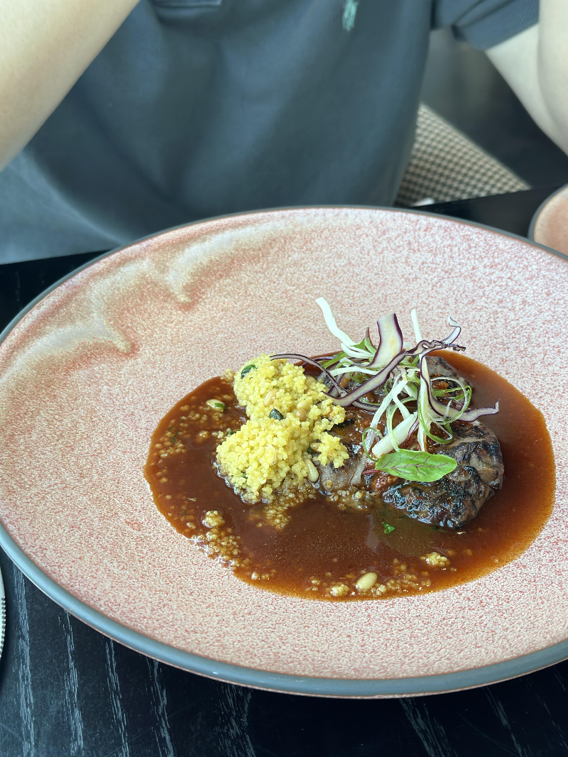 - 🐏 Grilled lumina lamb, apricot salsa, mixed grains and slaw → 살사 소스를 곁들인 양고기 (조온맛)