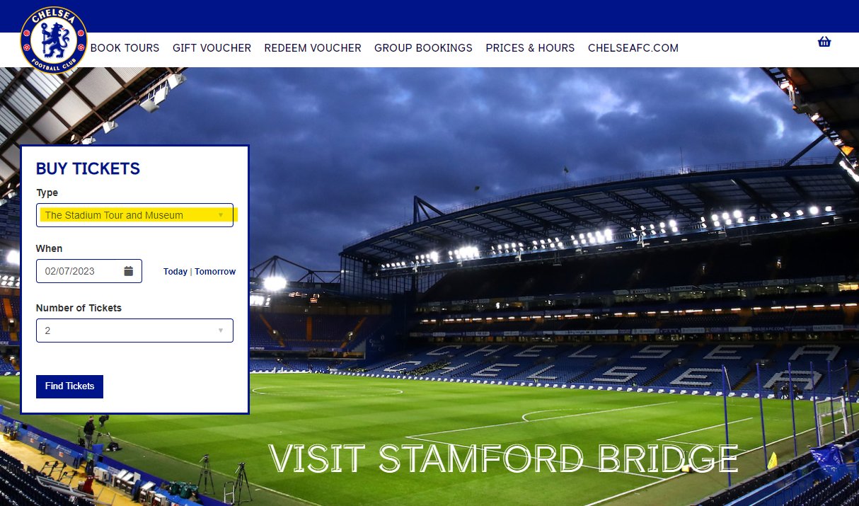 가장 먼저 당연하게도 첼시 구장 공식 홈페이지를 통해 투어 예약이 가능합니다. 투어 타입이 여러 가지가 있는데, 일반적으로 'The Stadium Tour and Museum'을 많이 선택하시는 것 같아요. 첼시의 역사가 담겨있는 박물관까지 관람할 수 있는 티켓이라, 첼시 팬이시라면 꼭 Museum 이 포함된 타입으로 예약하시기를 추천드려요.