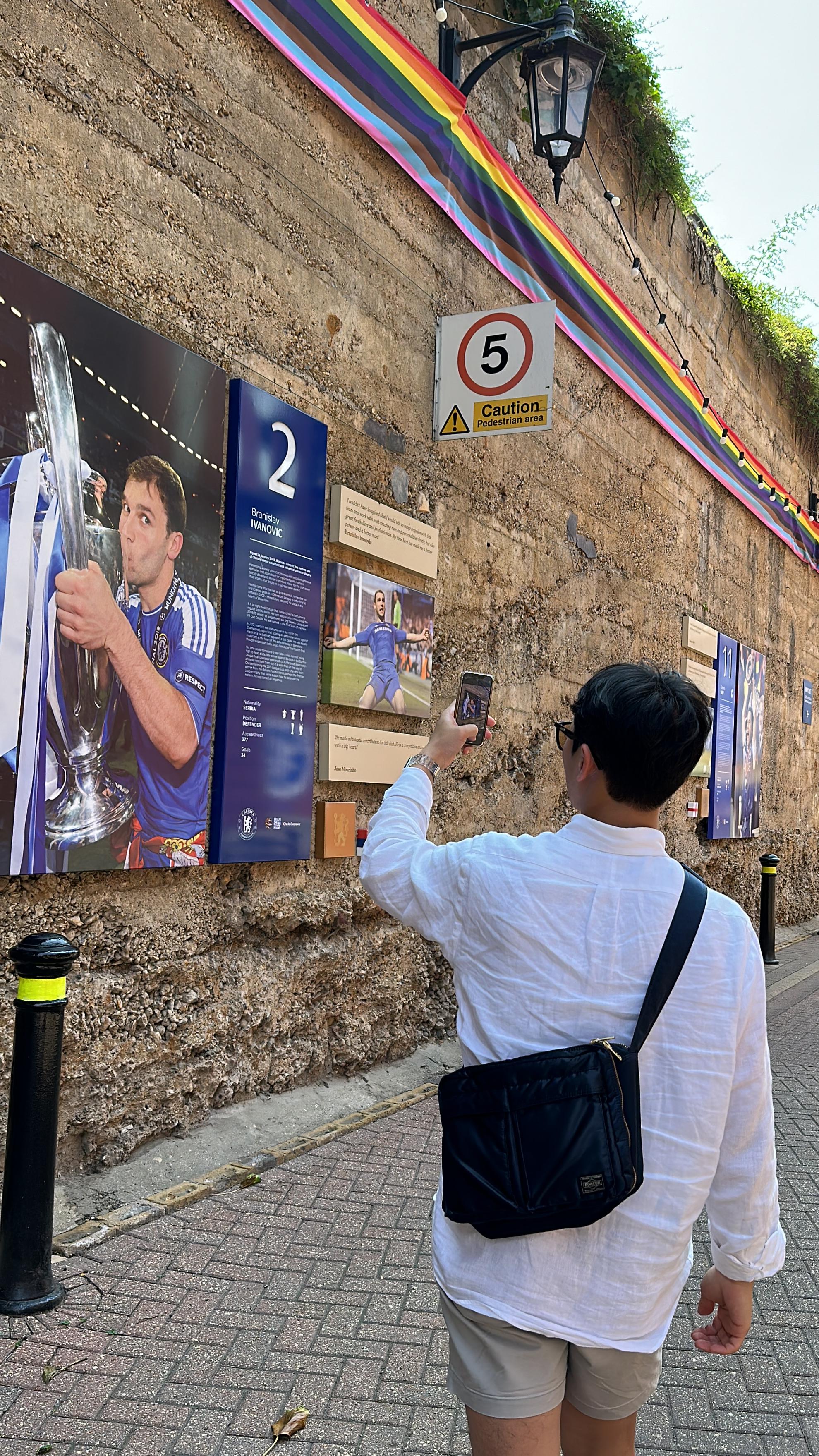 긴 벽을 따라서 스타디움 투어 장소로 이동합니다. 입구에서부터 스타디움 & 뮤지엄까지 이어지는 이 벽에는 첼시가 우승했던 순간들과 전설적인 선수들의 사진이 설명과 함께 벽에 기록되어 있어요.