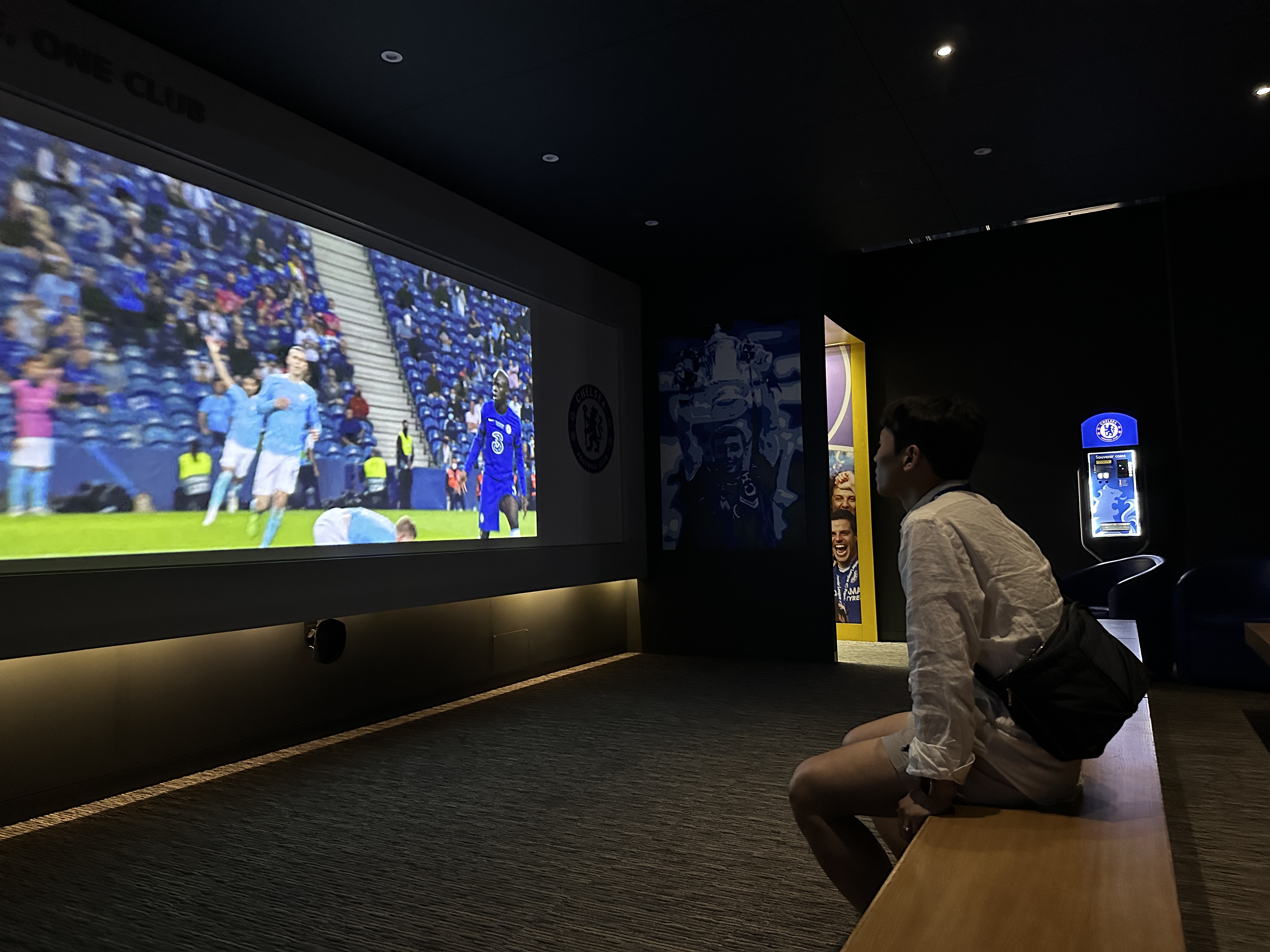 공도 차보고, 첼시 우승 트로피들도 구경하고, 마지막엔 가장 최근 첼시 우승 경기 후반전 영상을 관람했습니다.